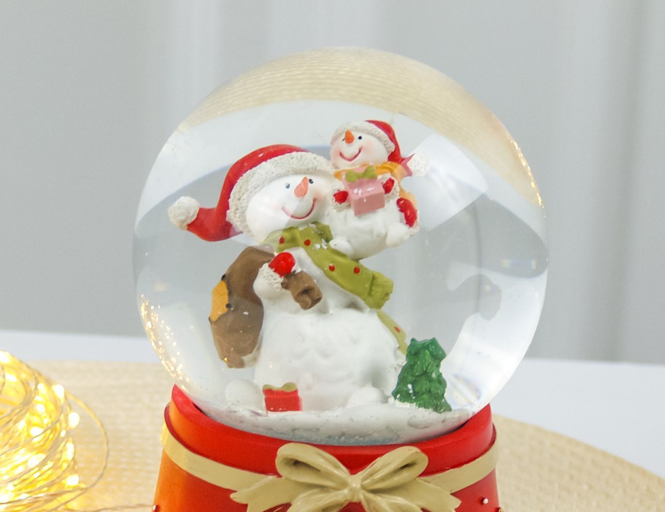 Музыкальный снежный шар СНЕГОВИК С МАЛЕНЬКИМ ПОМОЩНИКОМ, полистоун, стекло, 15 см, Sigro