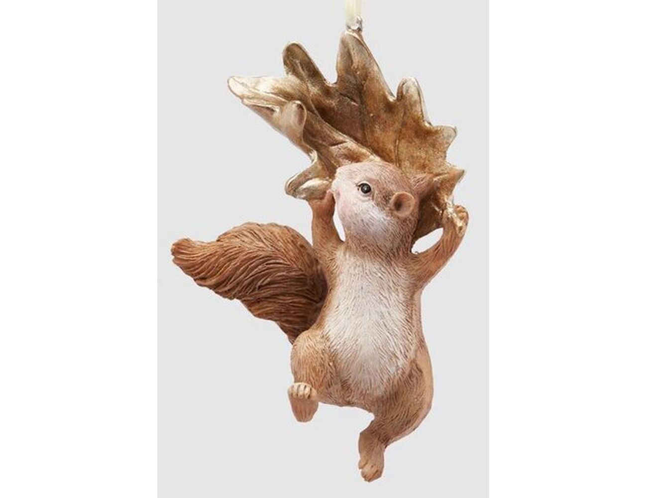 Ёлочная игрушка ИГРИВЫЙ БЕЛЬЧОНОК - ТАНЕЦ С ЛИСТОЧКОМ, полистоун, 12 см, EDG