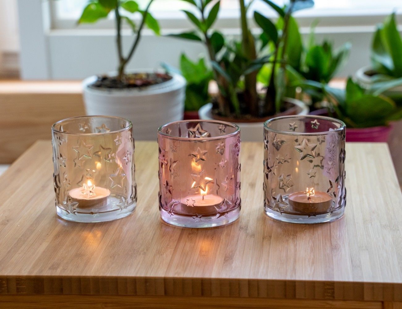Обаятельные звёздочки, словно проступившие на льду необычного, изумительно нежного оттенка, сделают танец огонька свечи ещё обворожительнее, наполняя бархатный вечер лёгким флёром романтики!