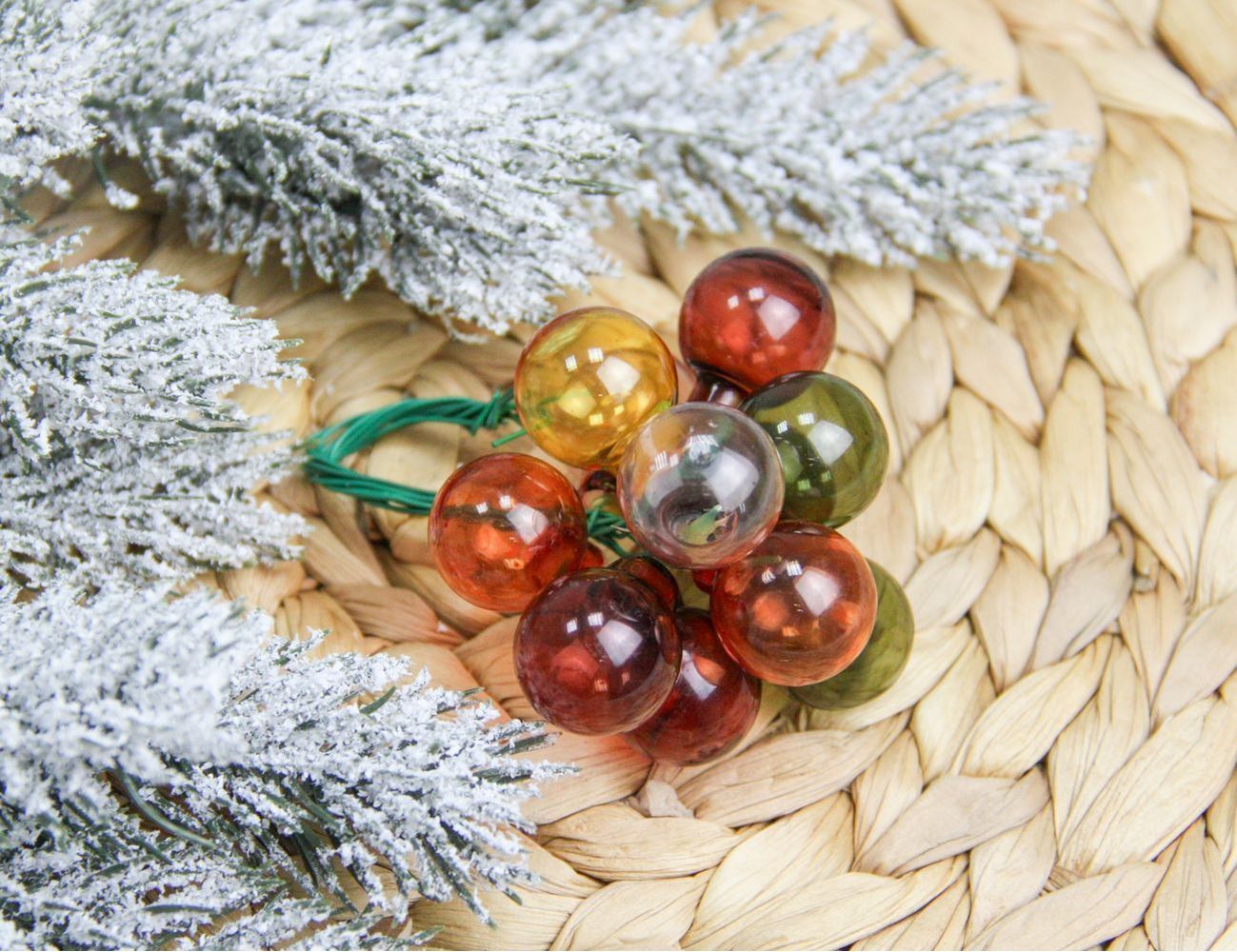 Гроздь стеклянных шаров на проволоке БАБИОЛЬ, стекло, прозрачные, медовые, розовые и оливковые, 2 см, 12 шт., Koopman International