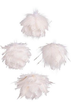 Елочная игрушка ПЕРНАТЫЙ ШАРИК, перо, белый, 10 см, в асс., Koopman International
