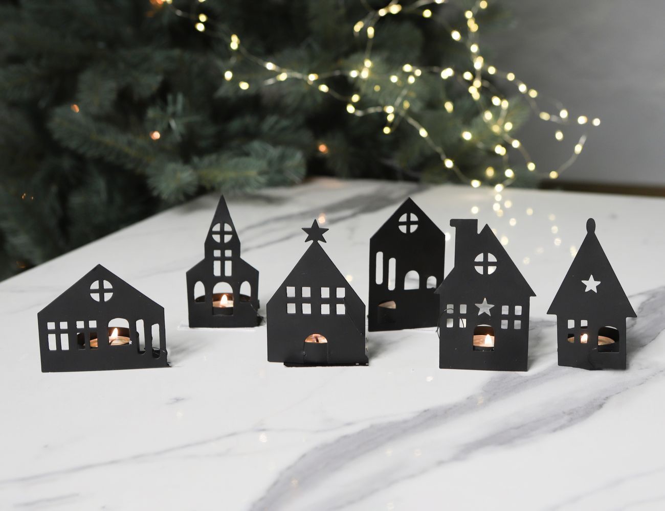 Декоративный подсвечник СИЛУЭТ ДОМИКА №3 НА УЛИЦЕ УЮТНОЙ, металл, чёрный, 10 см, Koopman International