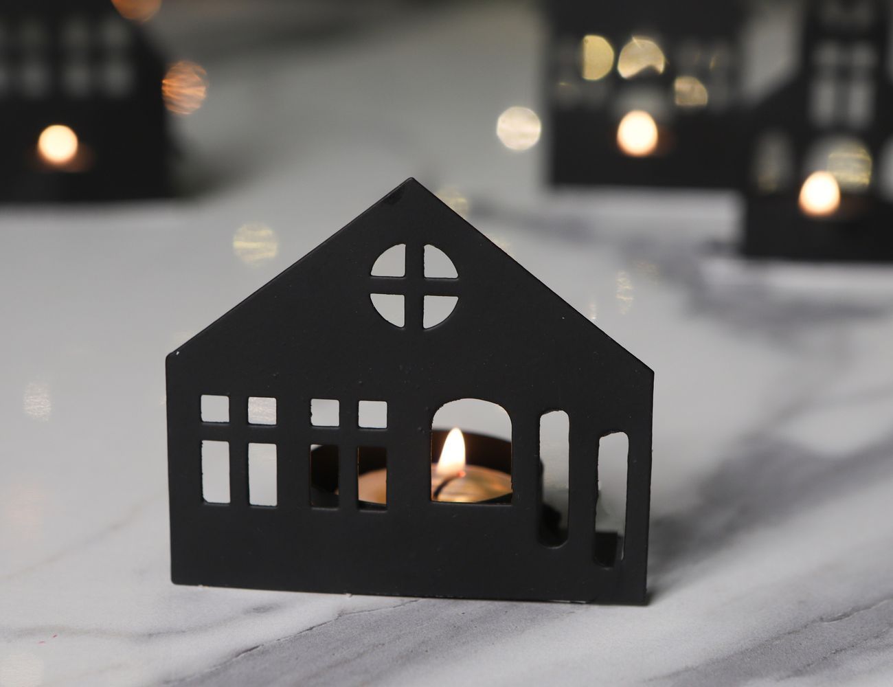 Декоративный подсвечник СИЛУЭТ ДОМИКА №4 НА УЛИЦЕ УЮТНОЙ, металл, черный, 8 см, Koopman International