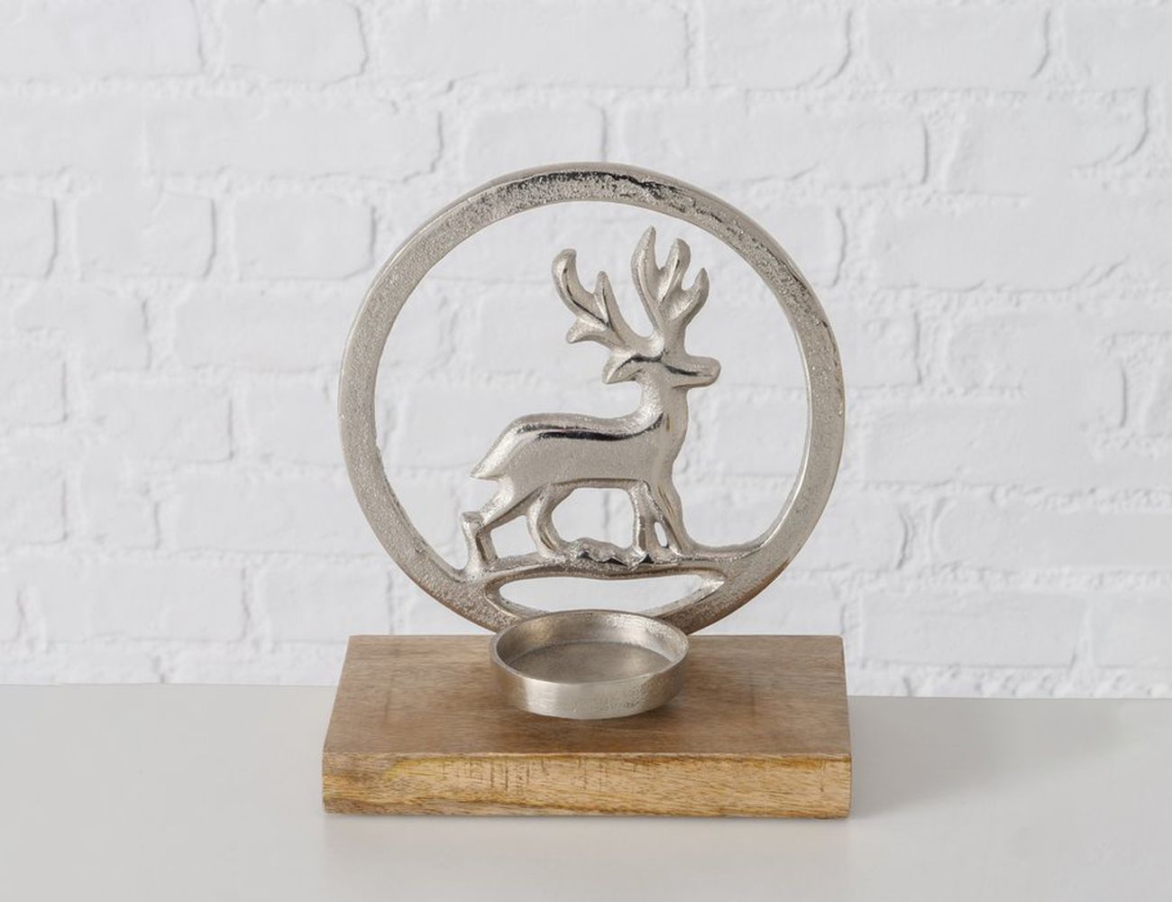 Декоративный подсвечник, стилизованный под фигурку серебряного оленя, словно перенесёт вас в волшебный зимний лес, освещенный ярким светом луны! Подсвечник смотрится очень элегантно и прекрасно впишется в интерьер гостиной, создавая атмосферу новогодней сказки и волшебства. А мягкий свет свечи будет согревать по вечерам не хуже камина.