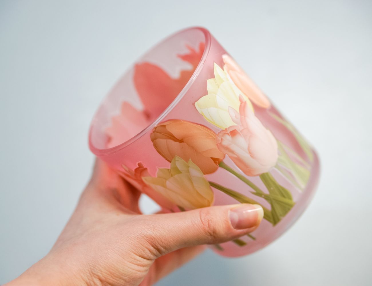 Милые розовые подсвечники из матового стекла, на поверхности которых будто написаны акварелью невесомой кистью художника тонкой акварельной живописью изображены стройные тюльпаны с длинными стебельками и нежными лепестками. Огоньки свечей подсветят цветы изнутри, создав эффект витража. Эта нежная весенняя композиция наполнит дом светом, радостью и ожиданием чуда!