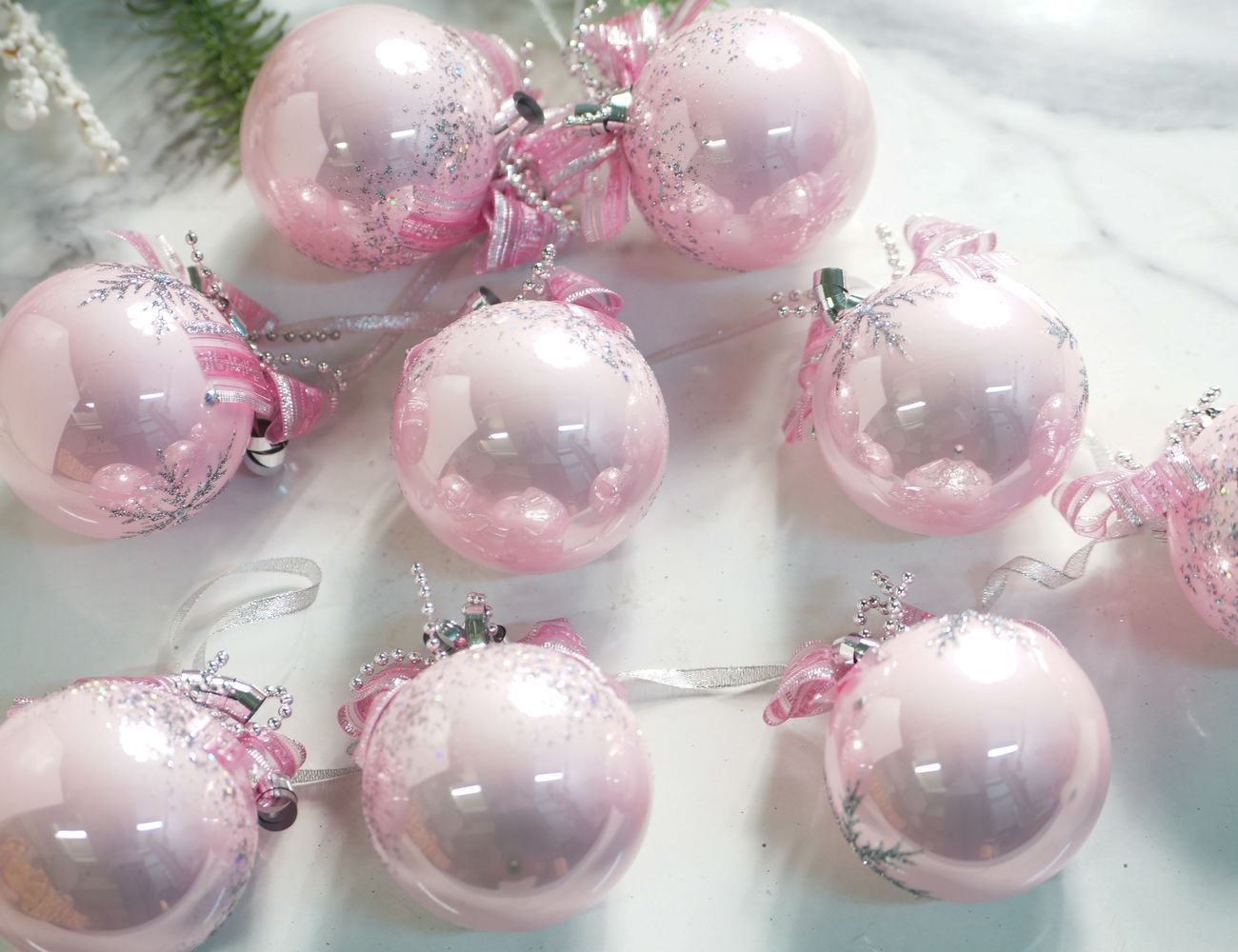 Ёлочное украшение - гирлянда из шаров НОВИНКА, розовый, стекло, 104 см, Елочка