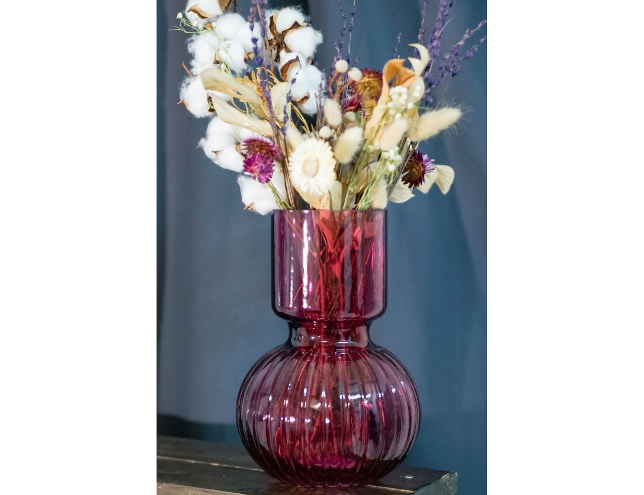 До чего же обаятельна прозрачно-вишнёвая ваза АННЕМАРИ! Элегантная форма, мягкое рифление, играющее с бликами света - она смотрится изысканно и уютно одновременно, и, несомненно, заслуживает прекрасного букета, который будет дарить тепло и нежность!