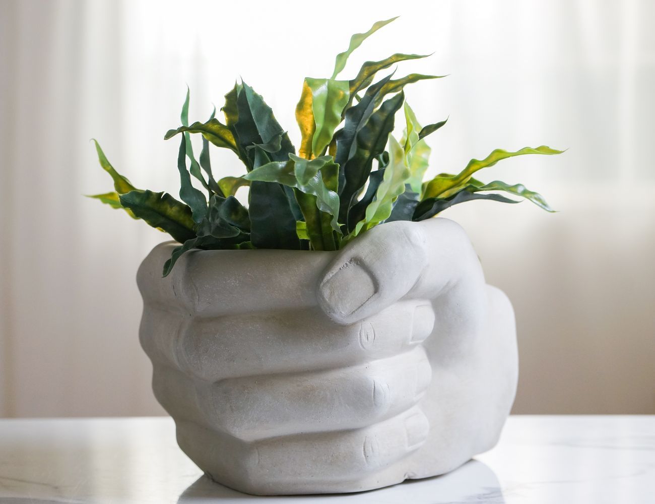 Бывают растения, которые выглядят такими трогательно хрупкими, что прямо хочется их защитить от нашего сурового внешнего мира, вот именно для них и создано это необычное бежевое кашпо - надёжная рука убережёт ваших зелёных питомцев от всех невзгод, а заодно и роль оригинального декора выполнит!
