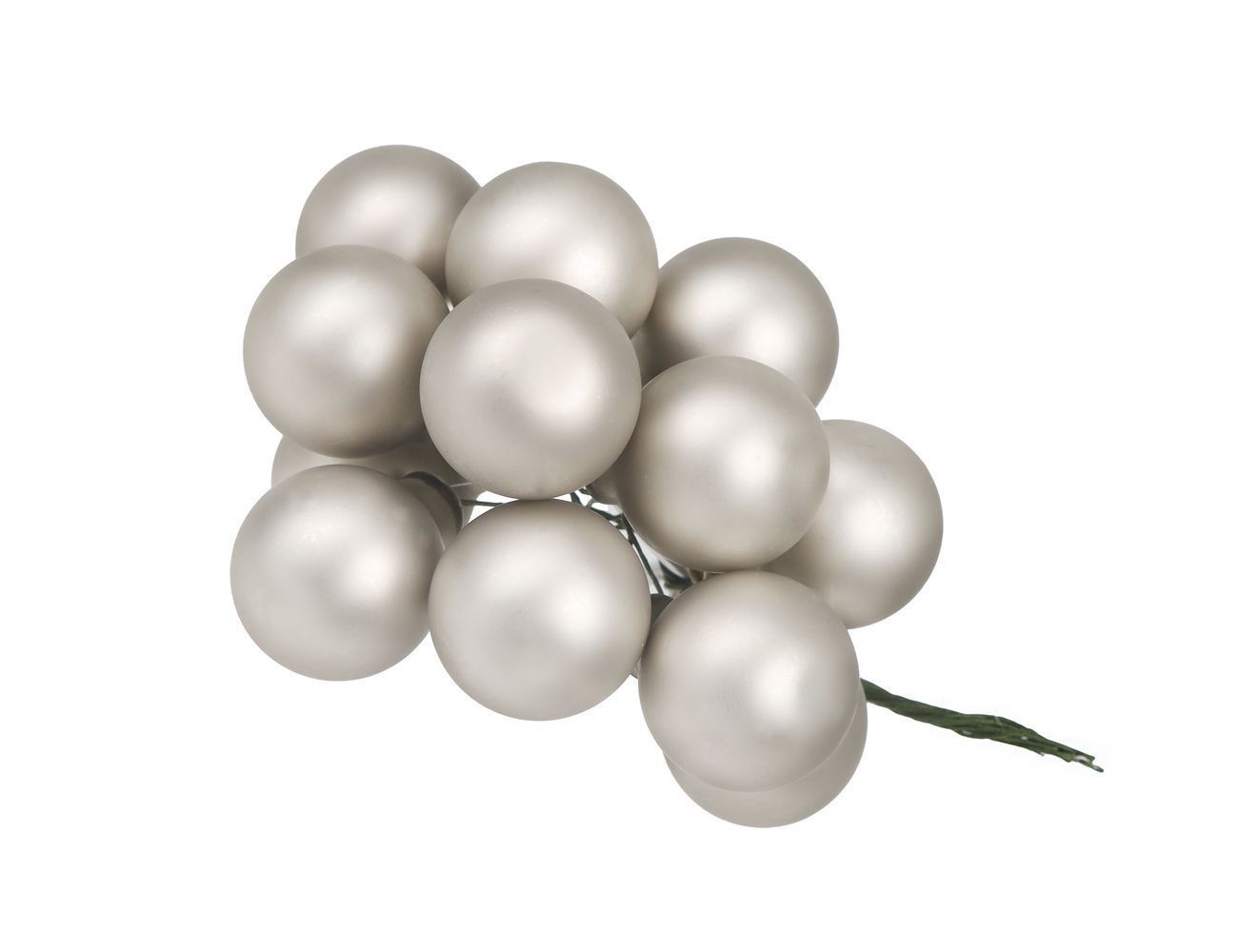 ГРОЗДЬ стеклянных матовых шариков на проволоке, 12 шаров по 25 мм, цвет: туманное серебро, Winter Deco