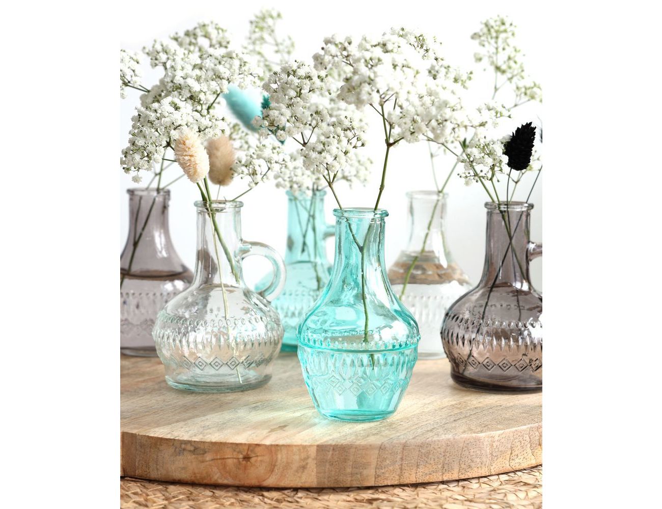Вазочка 'Индж' будет идеальна в тех случаях, когда вы принесете в дом маленький букетик или очаровательный хрупкий цветок. А пока их нет, она и сама по себе будет украшением, пропуская сквозь голубое стекло и причудливо преломляя солнечные лучи.