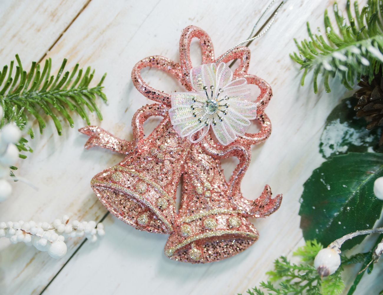 Распевая праздничное 'джингл-беллз, джингл-беллз' нужно обязательно посматривать на эту искристо-розовую пару колокольчиков, объединённых задорно развевающейся лентой и перламутровым бантом! Нет времени для скуки и грусти - настало время праздников!