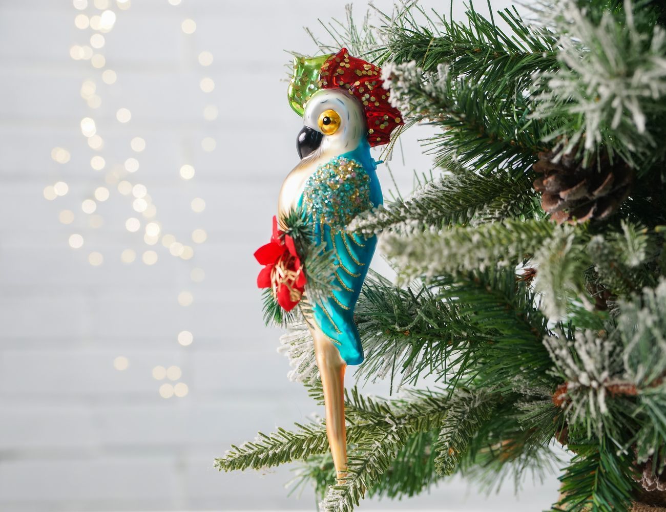Ёлочное украшение В МИРЕ ЖИВОТНЫХ: ГОЛУБОЙ КАКАДУ, стекло, 26 см, Kurts Adler