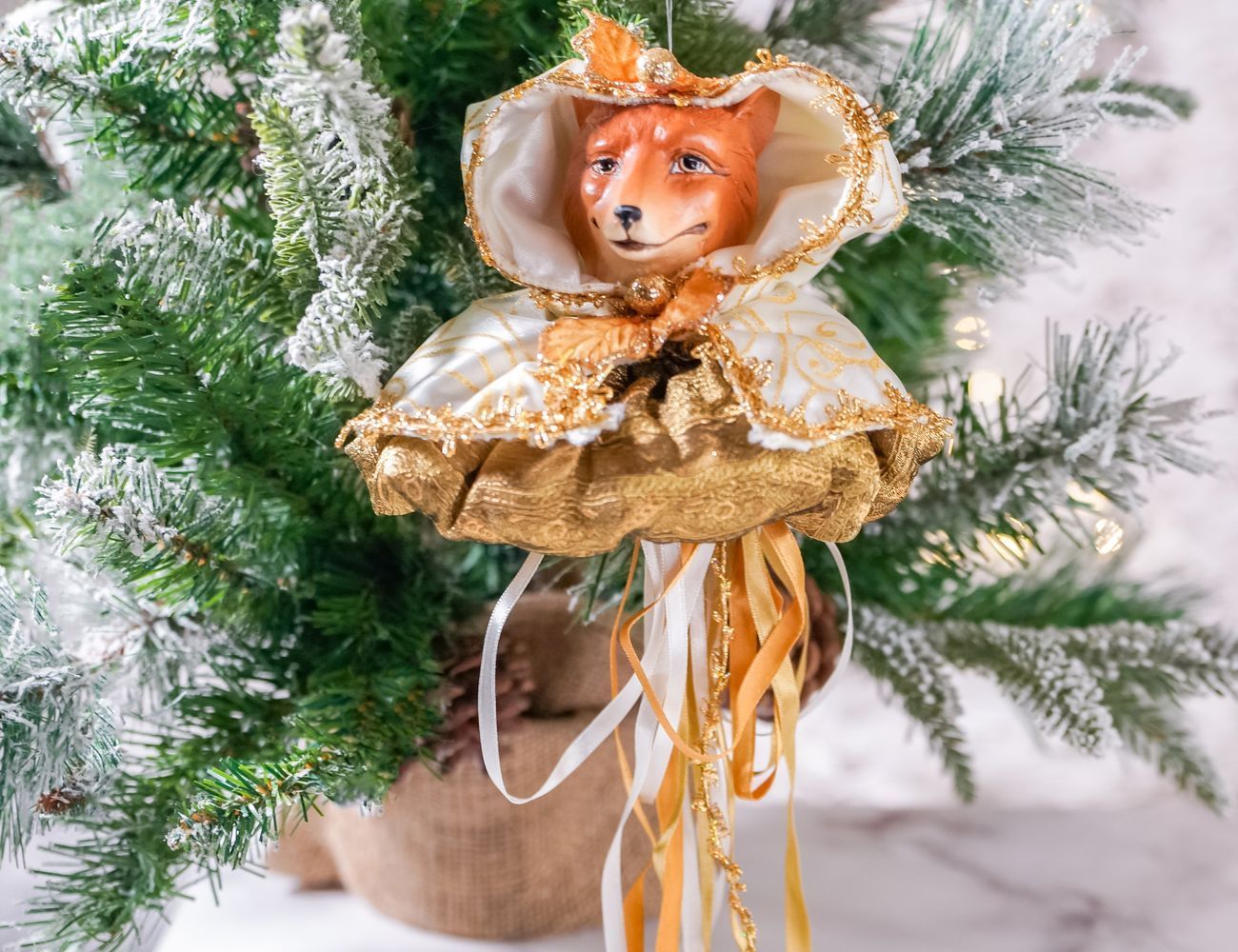 Это кто такой тут выглядывает из загадочного капюшона? Хм… Кажется, это знаменитый на весь свет хитрец - Лис Фоук! Он очень старался остаться неузнанным, но уж очень хотелось попасть на праздник - вот и выглянул. Фоук и дальше предпочёл бы сохранять инкогнито, впрочем, он знает, что своим нарядом замечательно украсит ёлочку не хуже любого шара или сосульки! Встречайте: лис Фоук!