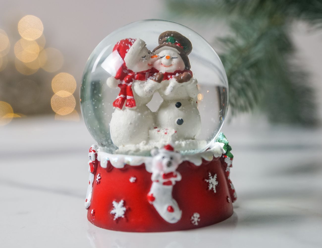 Снежный шар ВЕСЁЛАЯ ПАРОЧКА - ПУХЛЕНЬКИЕ СНЕГОВИЧКИ, полистоун, стекло, 9 см, Sigro