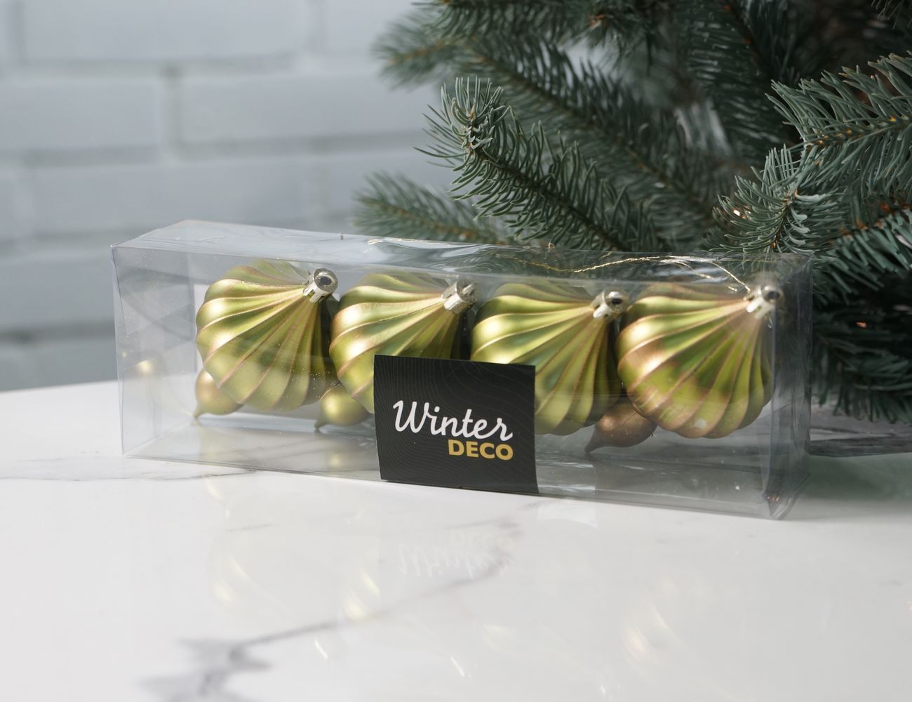 Набор ёлочных украшений ПОДВЕСКИ ТУЛЛЕНГ, пластик, оливковый, 12 см, 4 шт., Winter Deco
