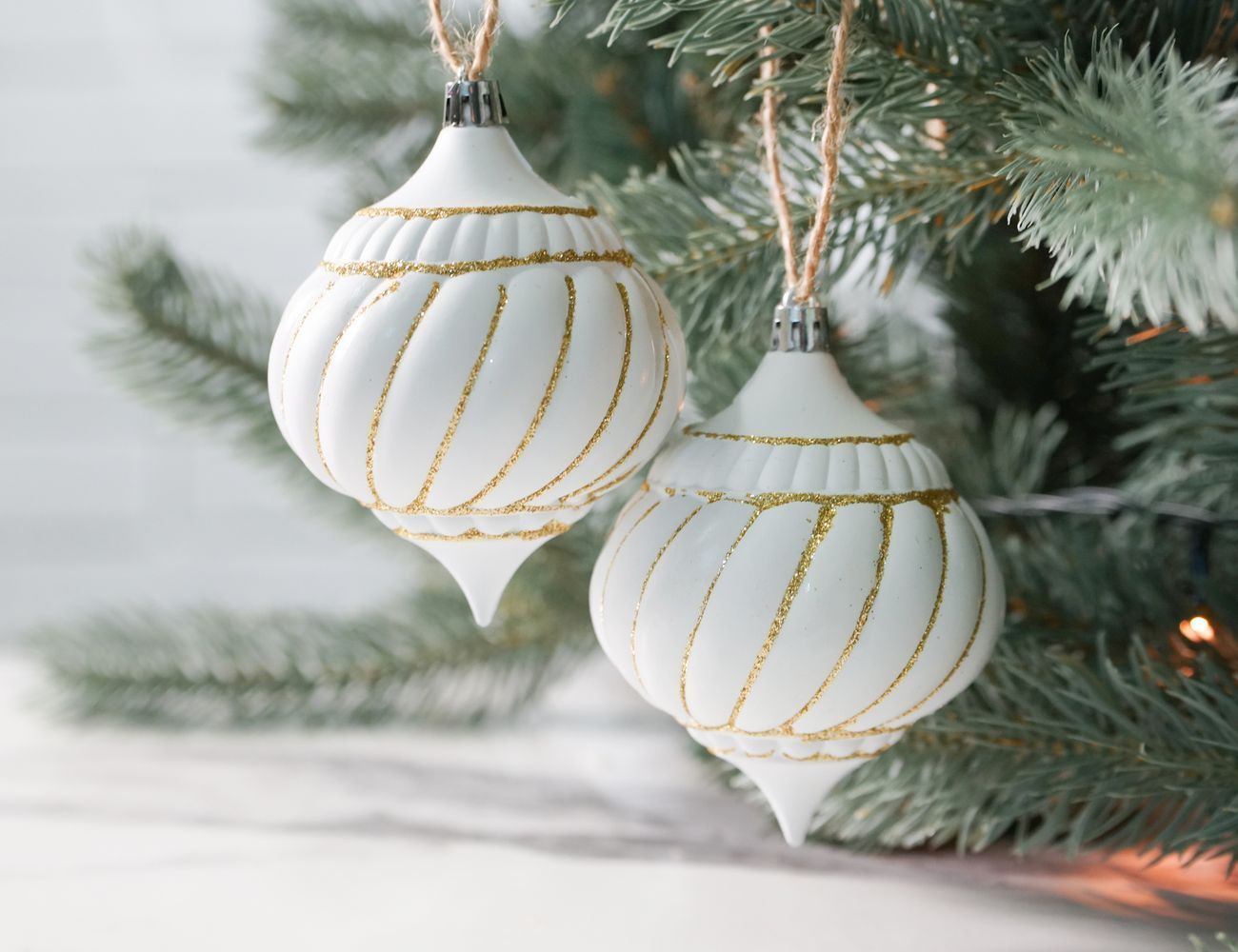 Набор ёлочных шаров-луковок ФРАНЦУЗСКИЙ КВАРТАЛ, пластик, белый с золотом, 10 см, упаковка 2 шт., Winter Deco