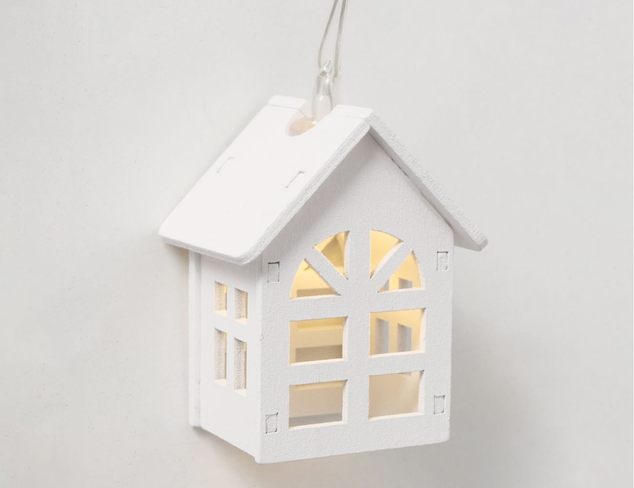 Количество ламп: 10 теплых белых LED с фигурными насадками - домиками.