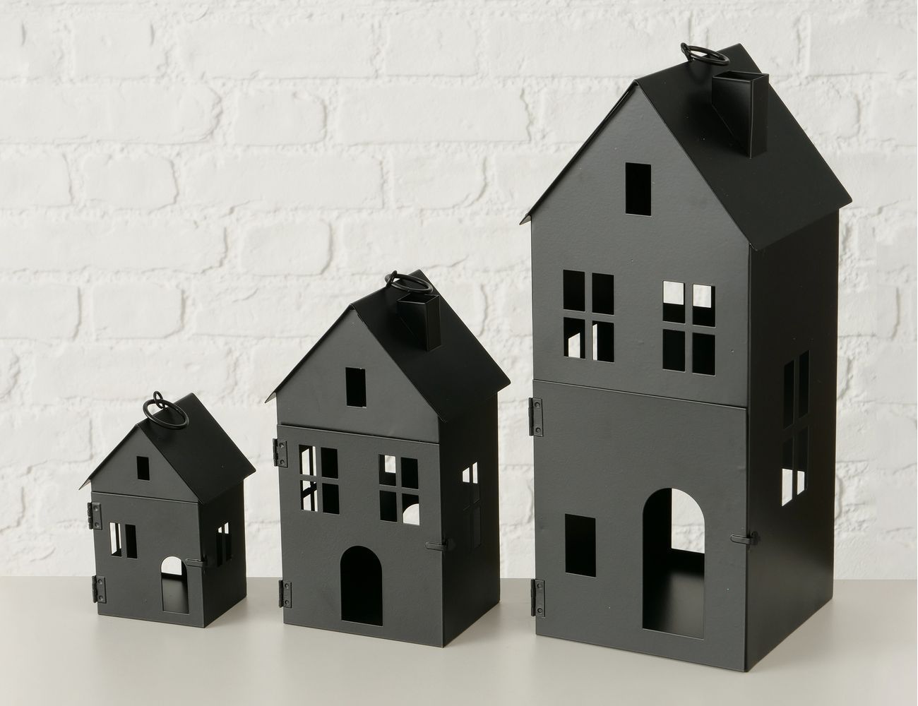 Набор подсвечников-домиков ФЛЕНСБУРГ, металл, чёрный, 13-35 см, 3 шт., Boltze