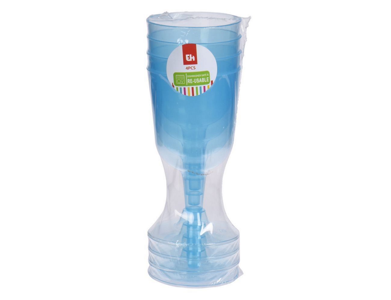 Набор одноразовых бокалов для вина АКЛИ, пластик, голубой, 160 мл, 4 шт., Koopman International