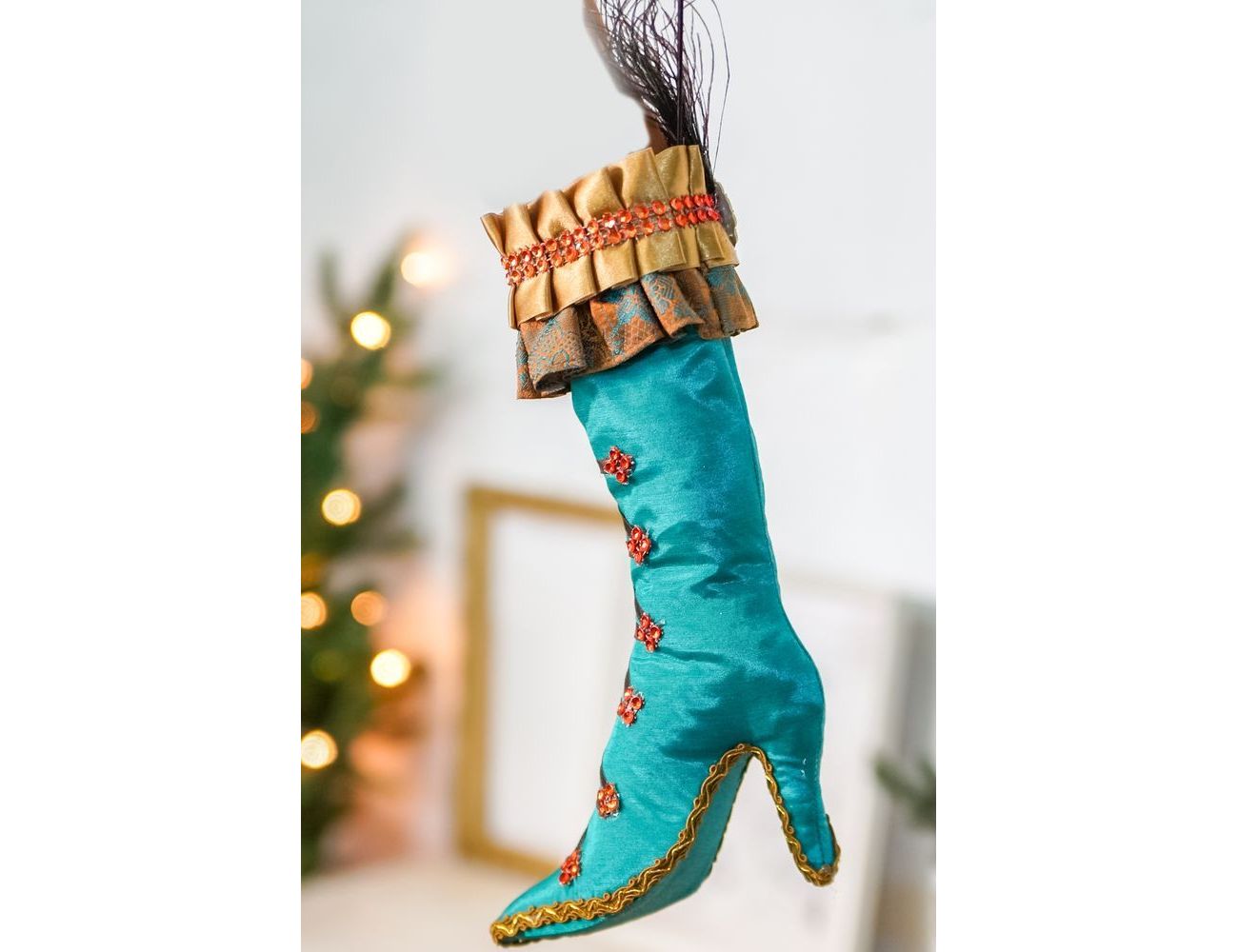 Ёлочная игрушка САПОЖОК КОКЕТКИ, текстиль, бирюзовый, медный, 29 см, Winter Deco