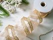 Декоративная лента БЬЯНКО Э ОРО, полиэстер, кремовая с золотым, 457х10 см, Winter Deco