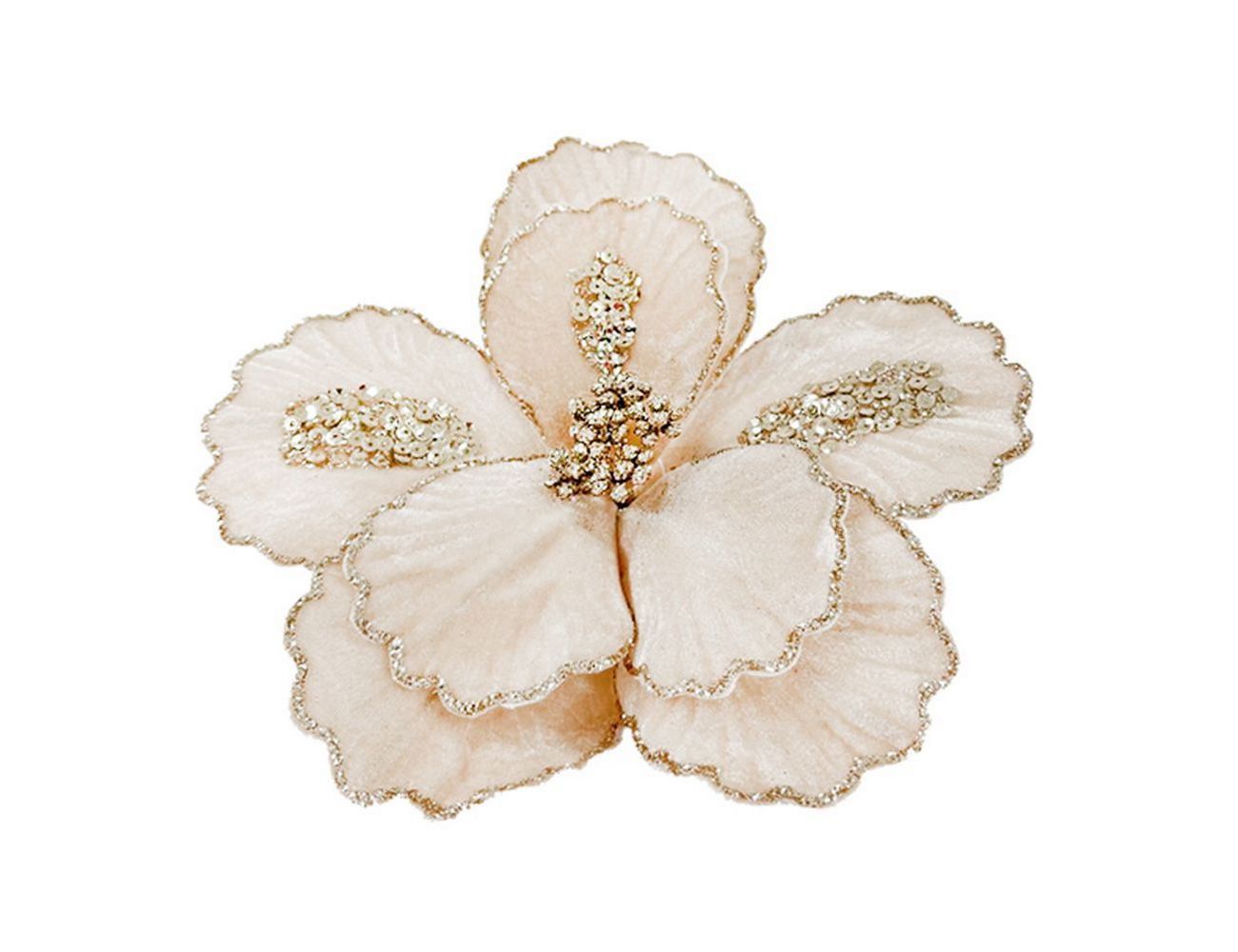 Искусственный цветок на клипсе МАГНОЛИЯ РОССА, текстиль, 20 см, Christmas Deluxe