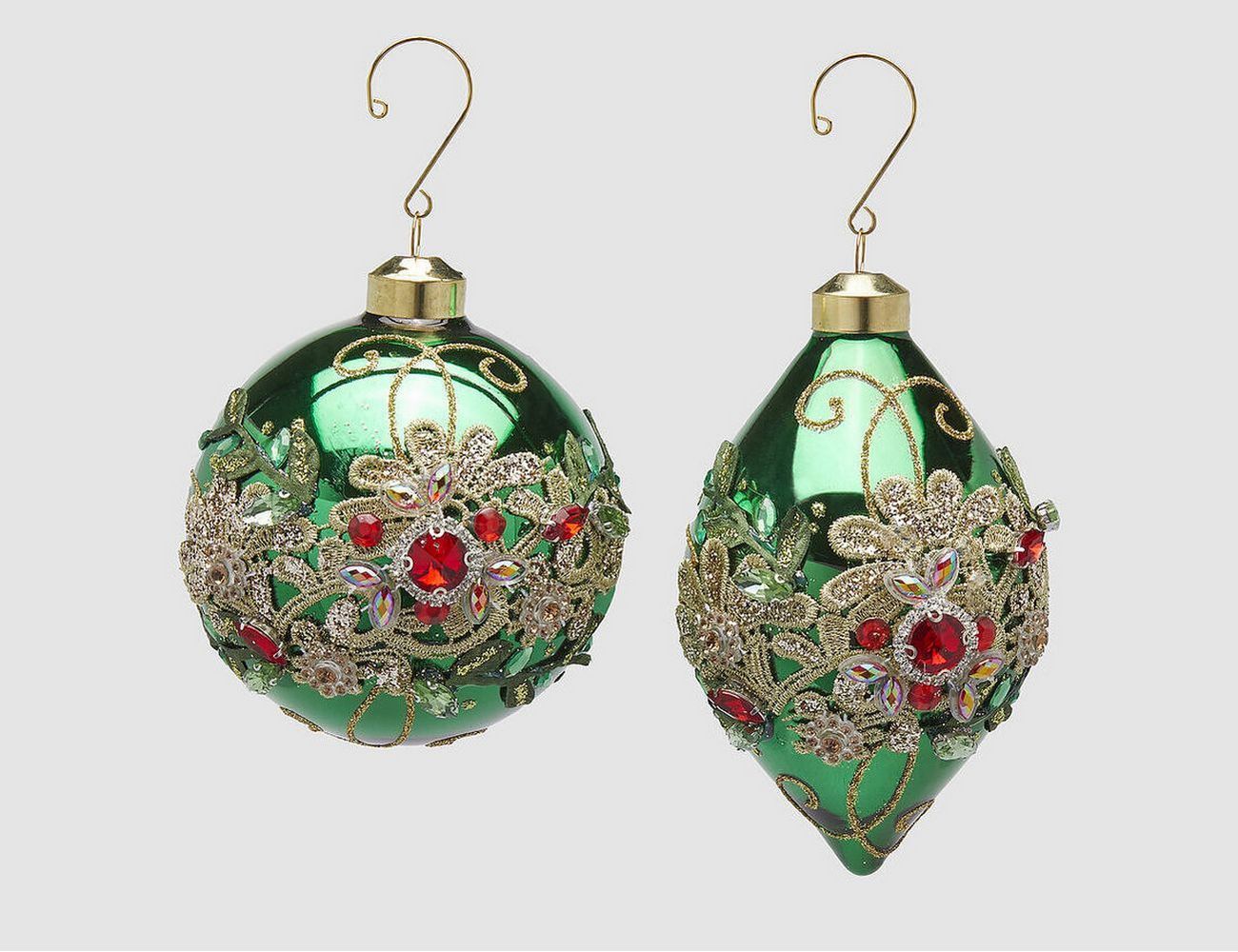 Набор ёлочных шаров и украшений ПАЛЛОНЕ, стекло, зелёный, 10-13 см, 12 шт., EDG