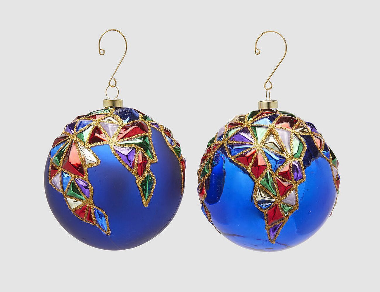 Набор ёлочных шаров МАЛАХИТОВАЯ ШКАТУЛКА, стекло, синий, 10 см, 2 шт., EDG