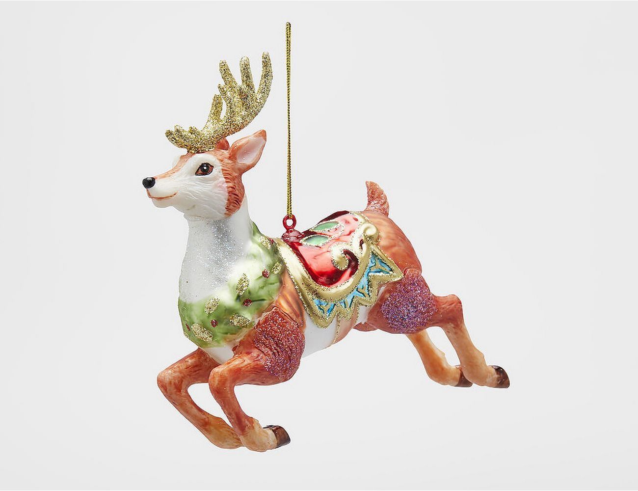 Элегантность и грация, а ещё яркость и веселье, лёгкий полёт и новогоднее настроение - великолепный гость из зимней сказки уже готов украсить ваш праздник! Искрящаяся крона рогов, цветная попона, венок из зелени и ягод - скорее встречайте оленя Парисса!