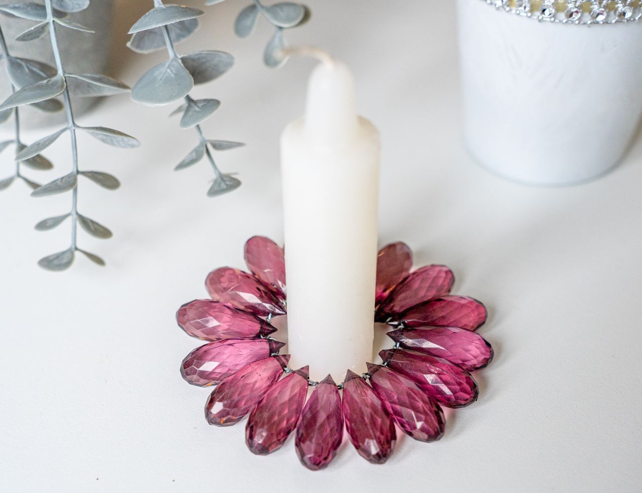 Бесконечно романтичный пурпурный венок для свечи станет великолепной деталью самого изысканного праздничного декора!