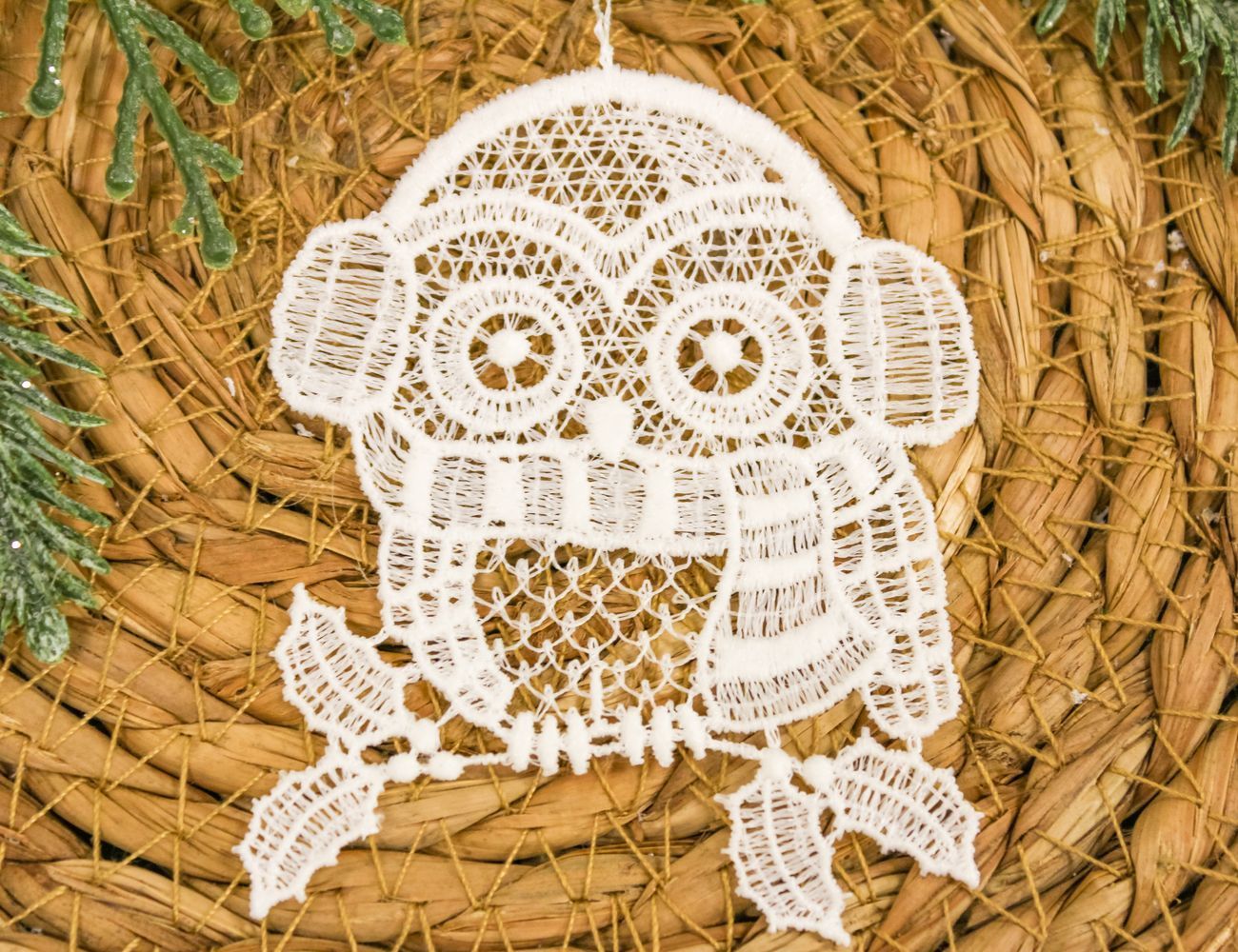 Милая кружевная совушка в шарфике и теплых наушниках настоящее Рождественское чудо! К тому же с богатой историей! Плауэн, Саксония. Родина плауэнских кружев. С 15 века в городе развивается ткачество, затем белошвейное мастерство и плетение кружев. В 1900 году Плауэн получает Гранпри на Всемирной выставке кружев в Париже. Затем были сложные периоды кризисов, но кружевное чудо не пропало, не закончилось в мировых катаклизмах. Чудо сохранилось, и в 1994 году был зарегистрирован официальный бренд плауэнских кружев. Всё, чтобы у вас случилось чудо.