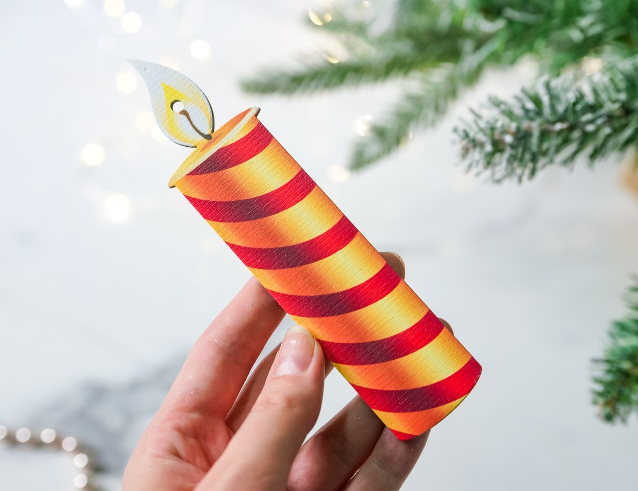 Замечательно нарядная новогодняя свеча, конечно, не горит по-настоящему, но всё равно дарит свет праздника, который уж точно не погаснет от дуновения зимнего ветра!