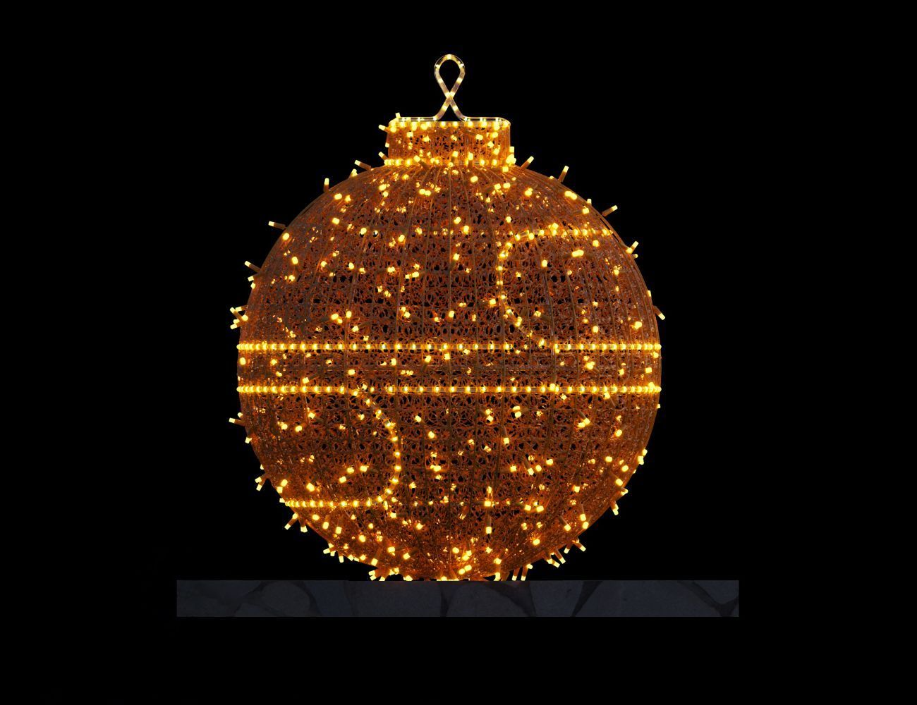 Будьте уверены - большой светящийся шар "Лайн" станет одним из самых эффектных элементов праздничного оформления! Впечатляющий - 80 см - диаметр, великое множество ярких светодиодов, оттенок которых вы можете выбрать на своё усмотрение, "кружевной" каркас, цвет которого также можно выбрать на свой вкус - ну как такое сияющее великолепие можно обойти вниманием? И в большом помещении, и на улице этот шар будет неустанно дарить окружающим радость с капелькой волшебства!