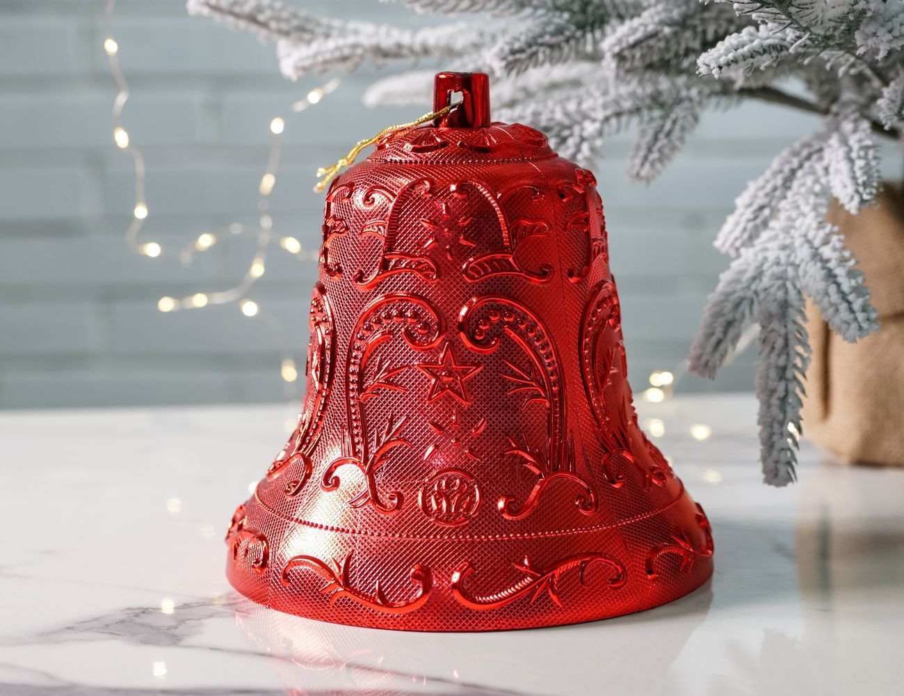 Традиционно-любимым украшением новогодней ели и праздничного интерьера всегда остаются колокольчики. Изысканностью формы колокольчики подчеркивают торжество и красоту новогоднего дерева. А рельеф этого необычного красного колокольчика напоминает, к тому же, о знаменитых русских промыслах и народных сказках. Такие колокольчики просто незаменимы, если вам нужно нарядить большую ёлку как в помещении, так и на улице! Красивые, лёгкие, небьющиеся, прекрасно гармонирующие с другими украшениями - всё, что нужно для того, чтобы с удовольствием создавать эффектный праздничный декор!