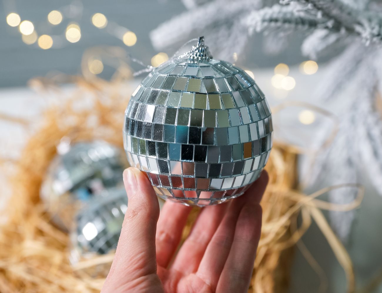 Изящная вариация на тему диско-шара! Представляете, какая начнётся феерическая игра бликов, когда зажгутся праздничные огни и отразятся во множестве крошечных пластиковых серебряных "зеркал", которыми полностью покрыты эти замечательные шары! Лёгкие, небьющиеся, крупные - ими можно украсить не только большую ёлку, но и оригинально декорировать помещение, в котором готовится блистательная праздничная вечеринка!