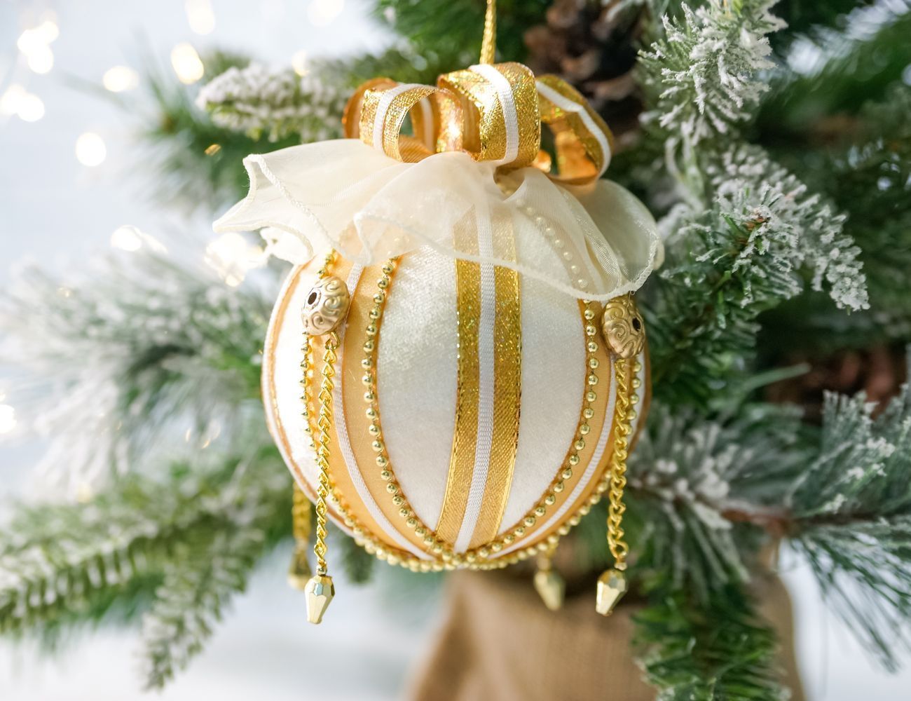 Ёлочный шар КРЕМОВАЯ НЕЖНОСТЬ, коллекция ВИНТАЖНЫЙ ШИК, полиэстер, 10 см, Winter Deco