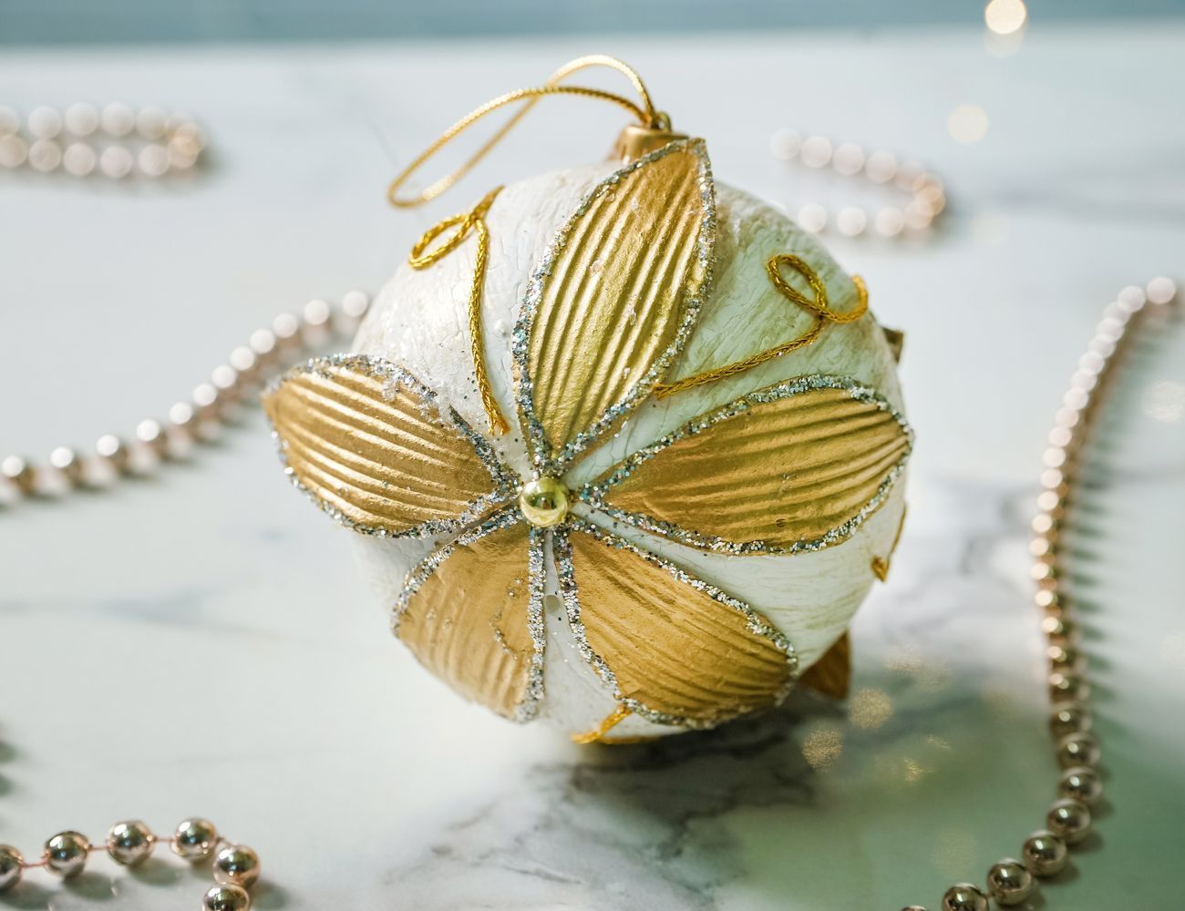 Ёлочный шар ПРЕКРАСНАЯ ЭДНА, коллекция ВИНТАЖНЫЙ ШИК, полиэстер, кремовый с золотым, 10 см, Winter Deco