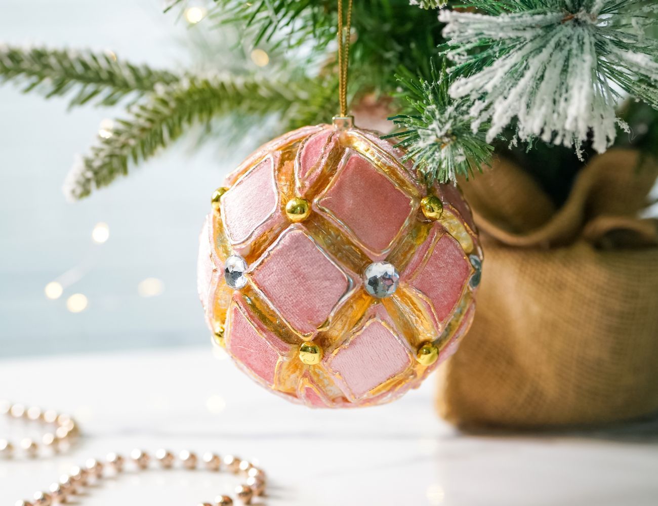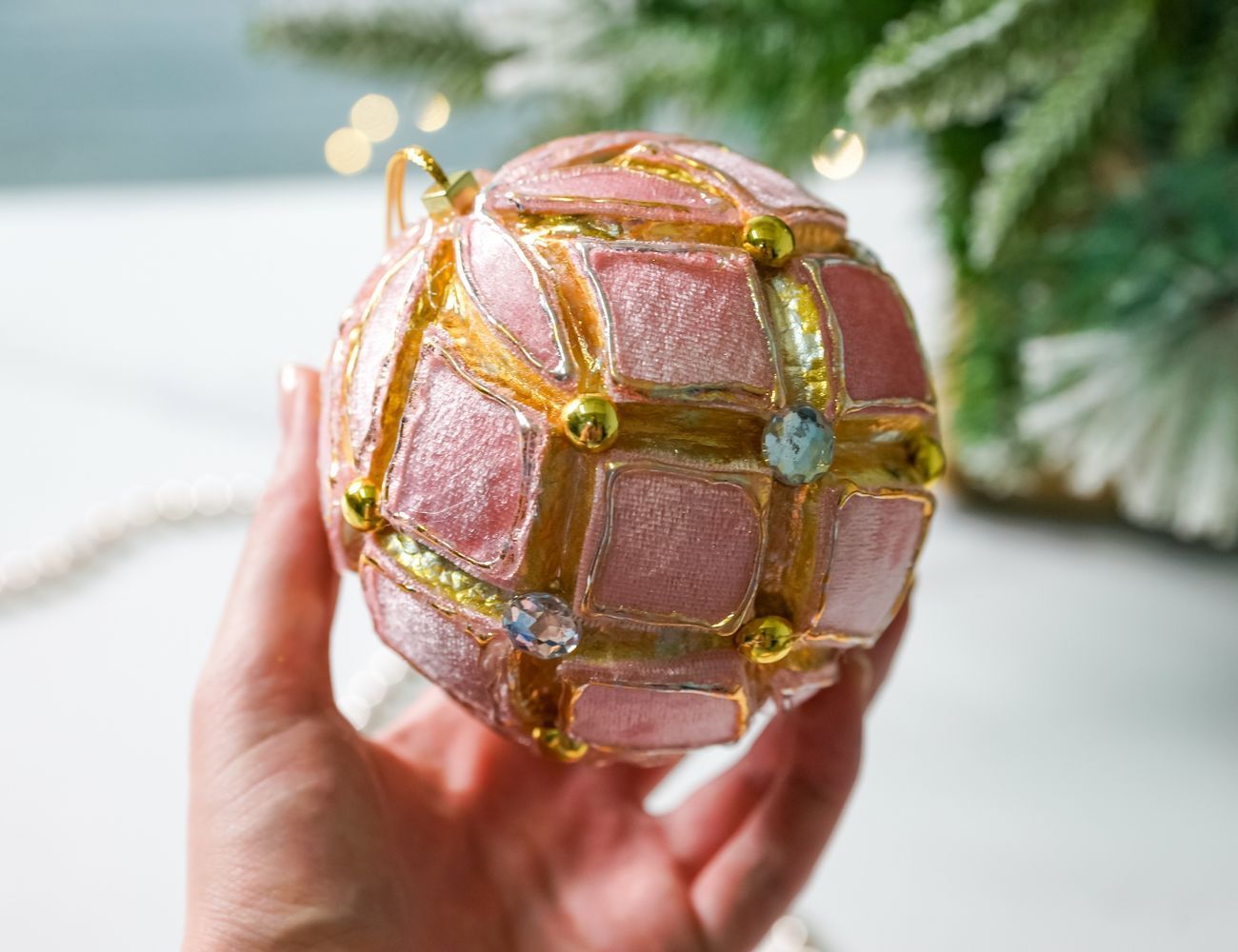 Ёлочный шар ЗОЛОТО ВАЛЕТТЫ, коллекция ВИНТАЖНЫЙ ШИК, полиэстер, розовый, 10 см, Winter Deco