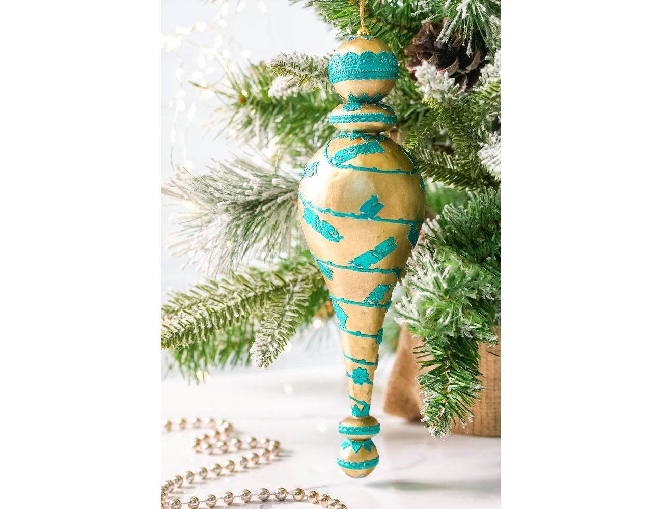 Ёлочная игрушка ВЕСЕННЯЯ СОСУЛЬКА, полиэстер, золотая с бирюзовым, 25 см, Winter Deco