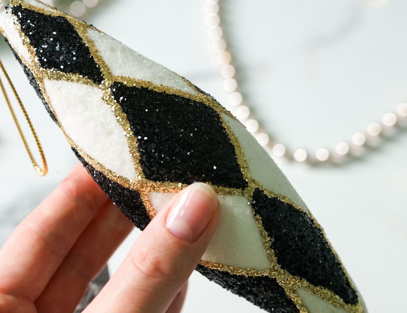 Зимой настаёт время волшебства, а раз так, то почему бы не раскрыть старую книгу и не погрузиться в мир сказки, театра и перевоплощений! Украшение, напоминающее о смешливом Арлекине? А быть может о вечной борьбе тёмного и светлого начал? Или о смене дня и ночи? В любом случае, мерное покачивание такой 'сосульки' среди пушистой хвои перенесёт вас в чарующий сказочный мир…