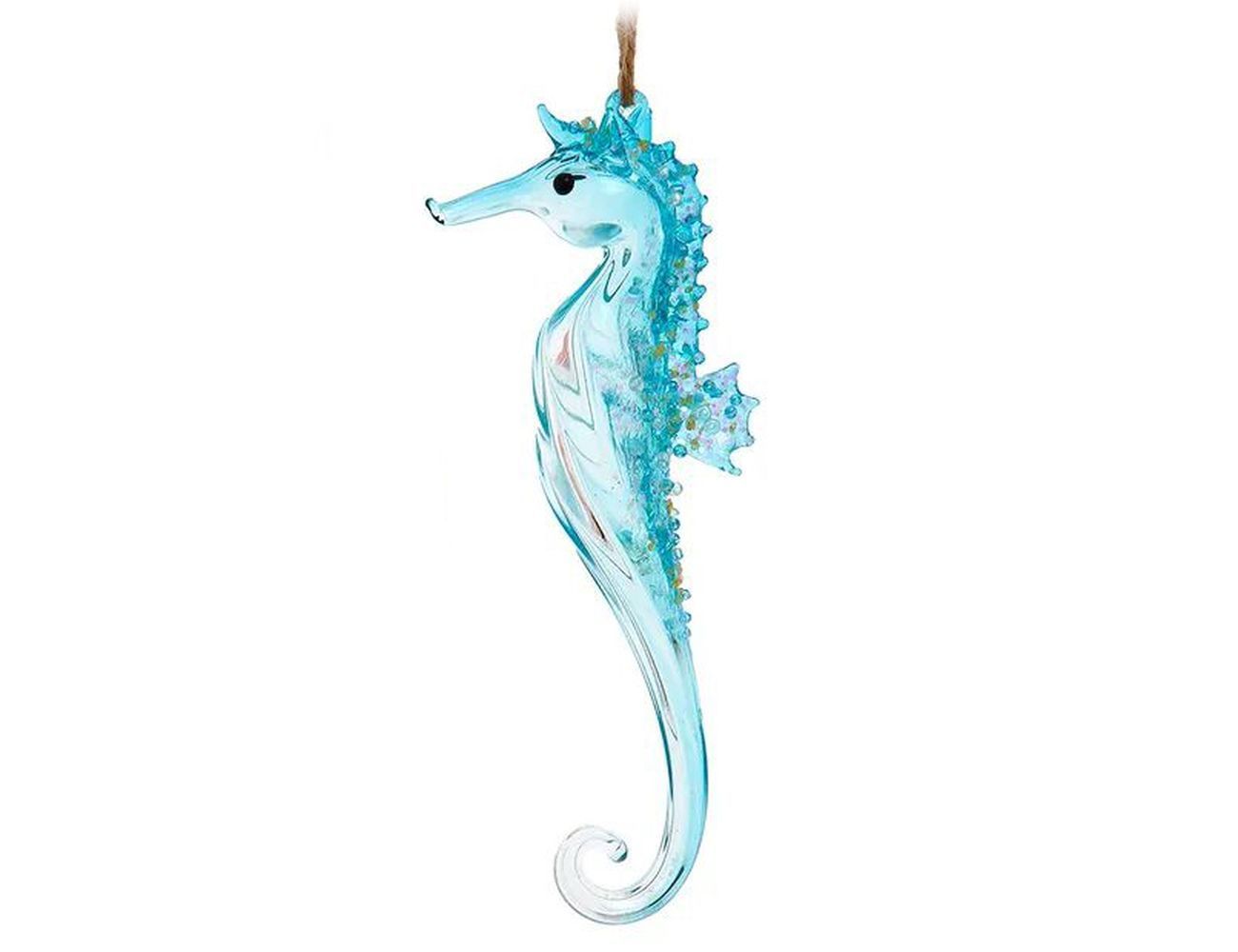 Ёлочная игрушка МОРСКОЙ КОНЁК - МЕЧТЫ О МОРЕ, стекло, голубой, 15 см, Kurts Adler