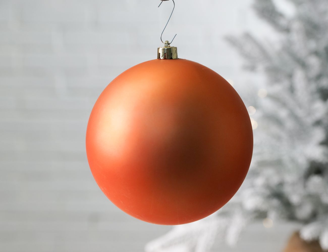 Крупный матовый шар оттенка пряной тыквы. Такие шары идеально подходят для оформления искусственных и натуральных елей на улице и в помещениях.