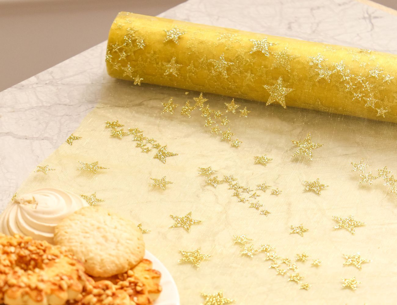 Ткань для декорирования - ваш великолепный помощник в праздничном оформлении дома, ведь область её применения ограничена лишь полётом вашей фантазии! Ткань 'Эрмони Шайн', выполненная в двух цветах-компаньонах и украшенная сверкающим золотистым рисунком, прекрасно подойдёт для украшения новогоднего стола и стульев, ёлки, праздничных витрин, подоконников, упаковывания подарков - просто фантазируйте!