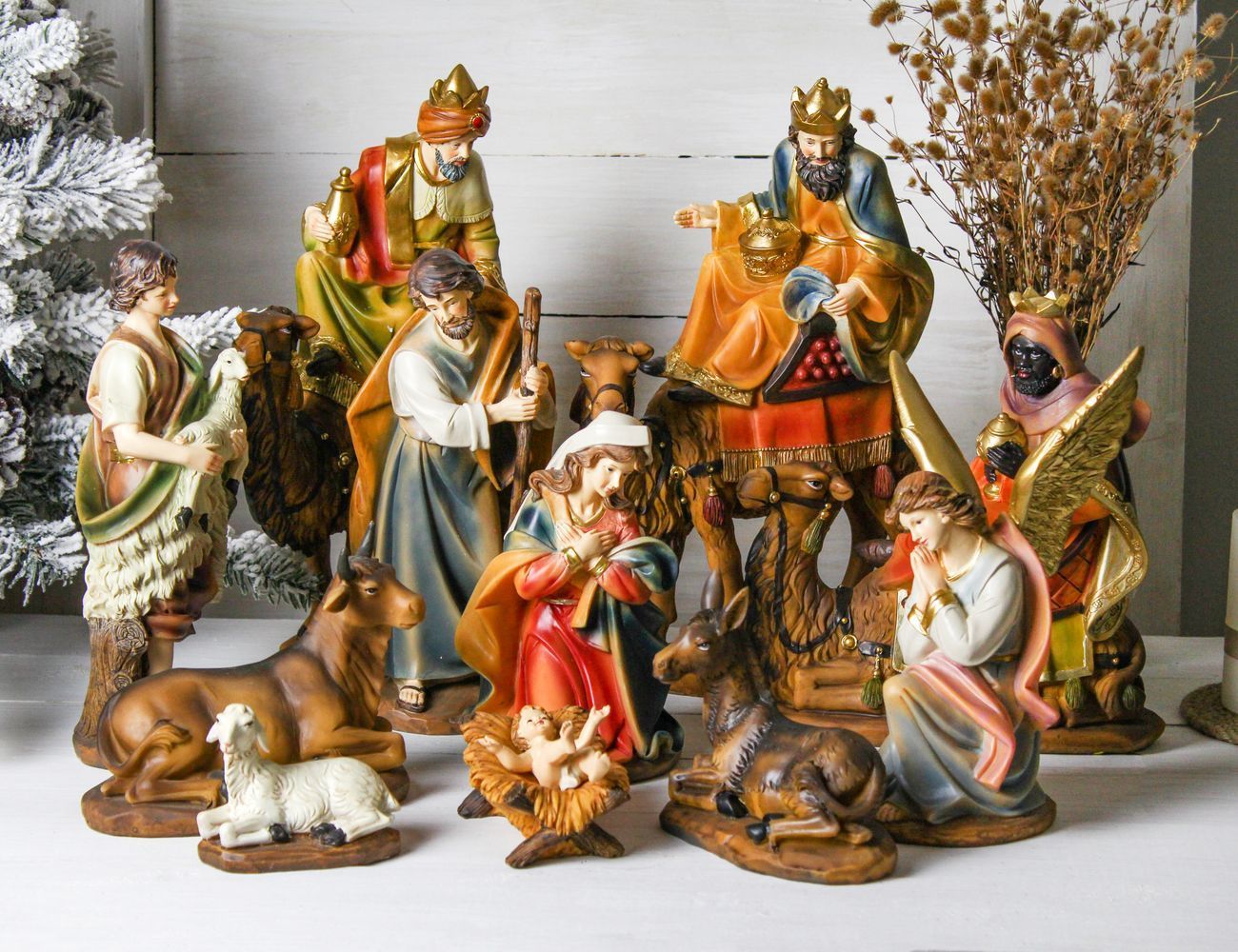 Набор фигурок для рождественского вертепа ПОКЛОНЕНИЕ МЛАДЕНЦУ, полистоун, 25 см, 11 шт., Due Esse Christmas