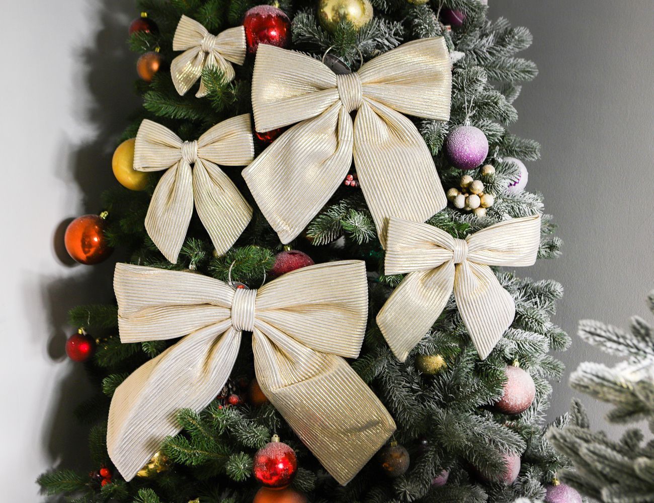 Вечная неувядаемая классика и золотой стандарт дизайна! Подойдет и для новогодней елки, и для рождественского венка, и для гирлянды. Бежевый бант с оригинальной фактурой гармонично впишется в любое дизайнерское решение – захотите ли вы украсить праздничный стол, шторы или иные детали интерьера.