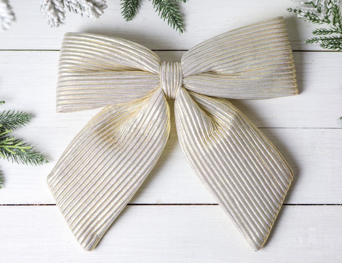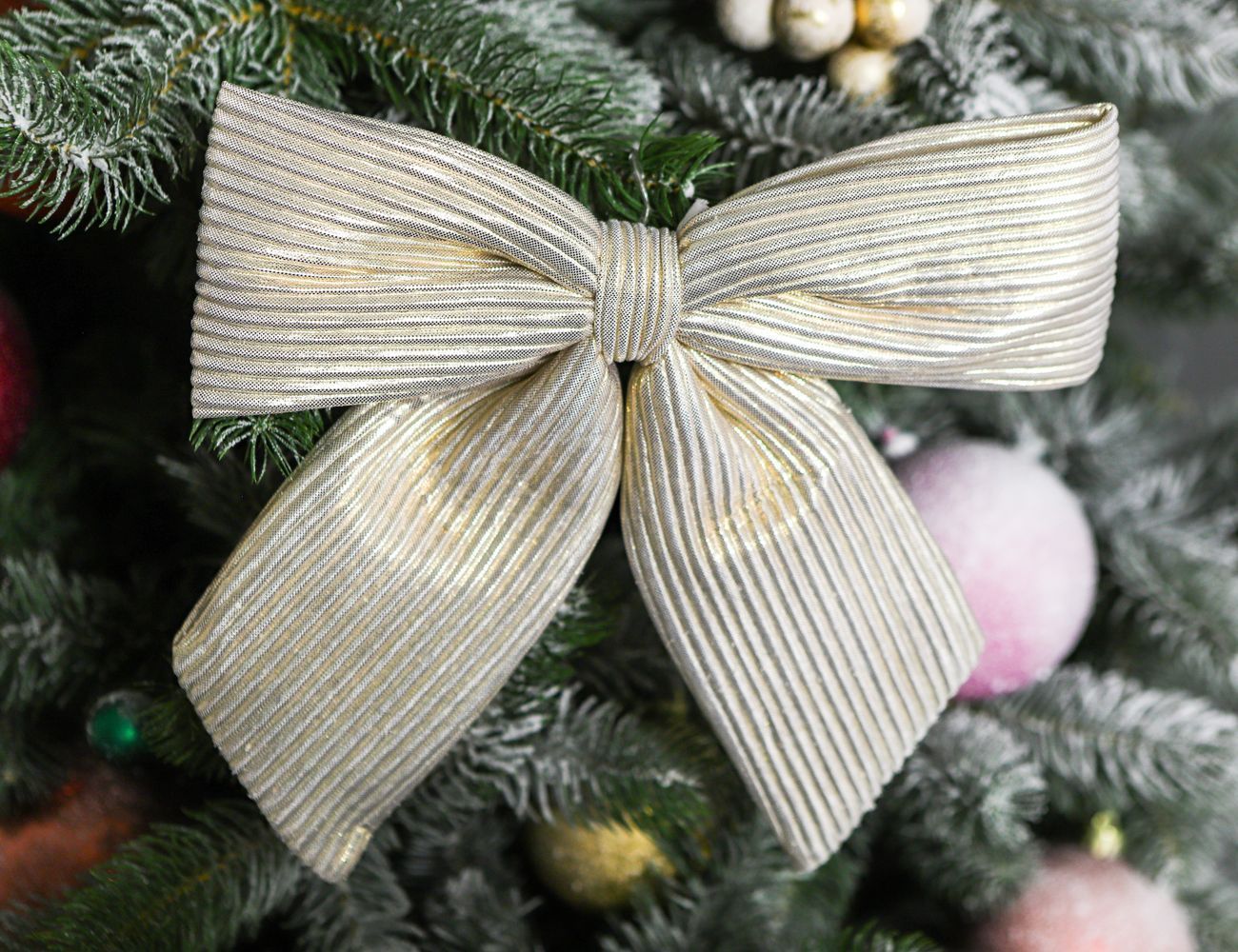 Вечная неувядаемая классика и золотой стандарт дизайна! Подойдет и для новогодней елки, и для рождественского венка, и для гирлянды. Бежевый бант с оригинальной фактурой гармонично впишется в любое дизайнерское решение – захотите ли вы украсить праздничный стол, шторы или иные детали интерьера.