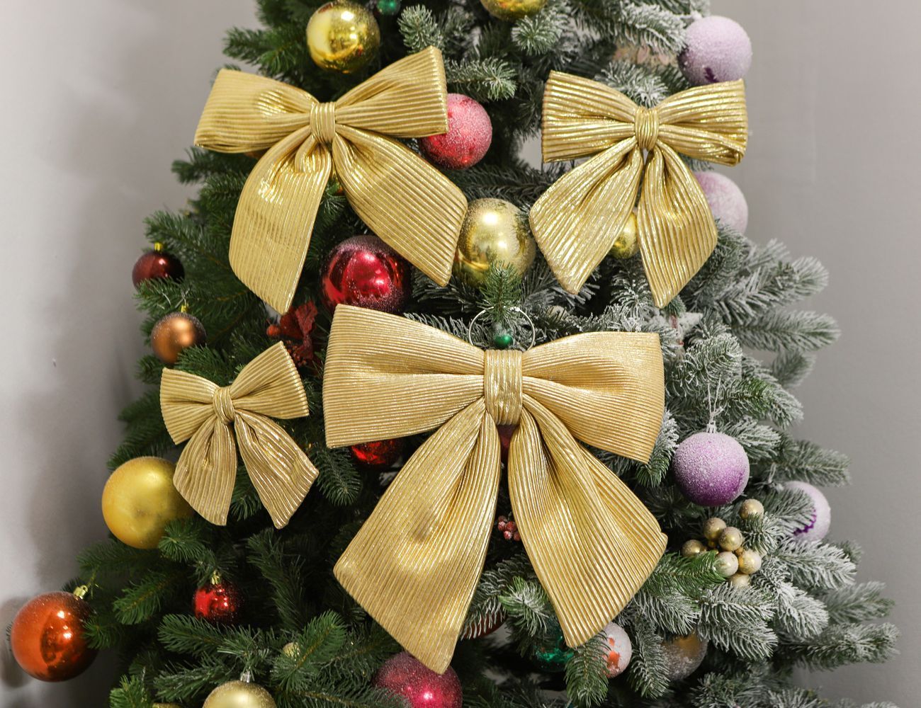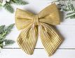 Золотой бант с оригинальной фактурой гармонично впишется в любое дизайнерское решение – захотите ли вы украсить праздничный стол, шторы или иные детали интерьера. Подойдет и для новогодней елки, и для рождественского венка, и для гирлянды.