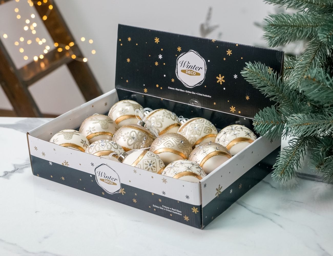 Набор ёлочных шаров СКАЗКИ СЕВЕРА, стекло, 8 см, 12 шт., Winter Deco