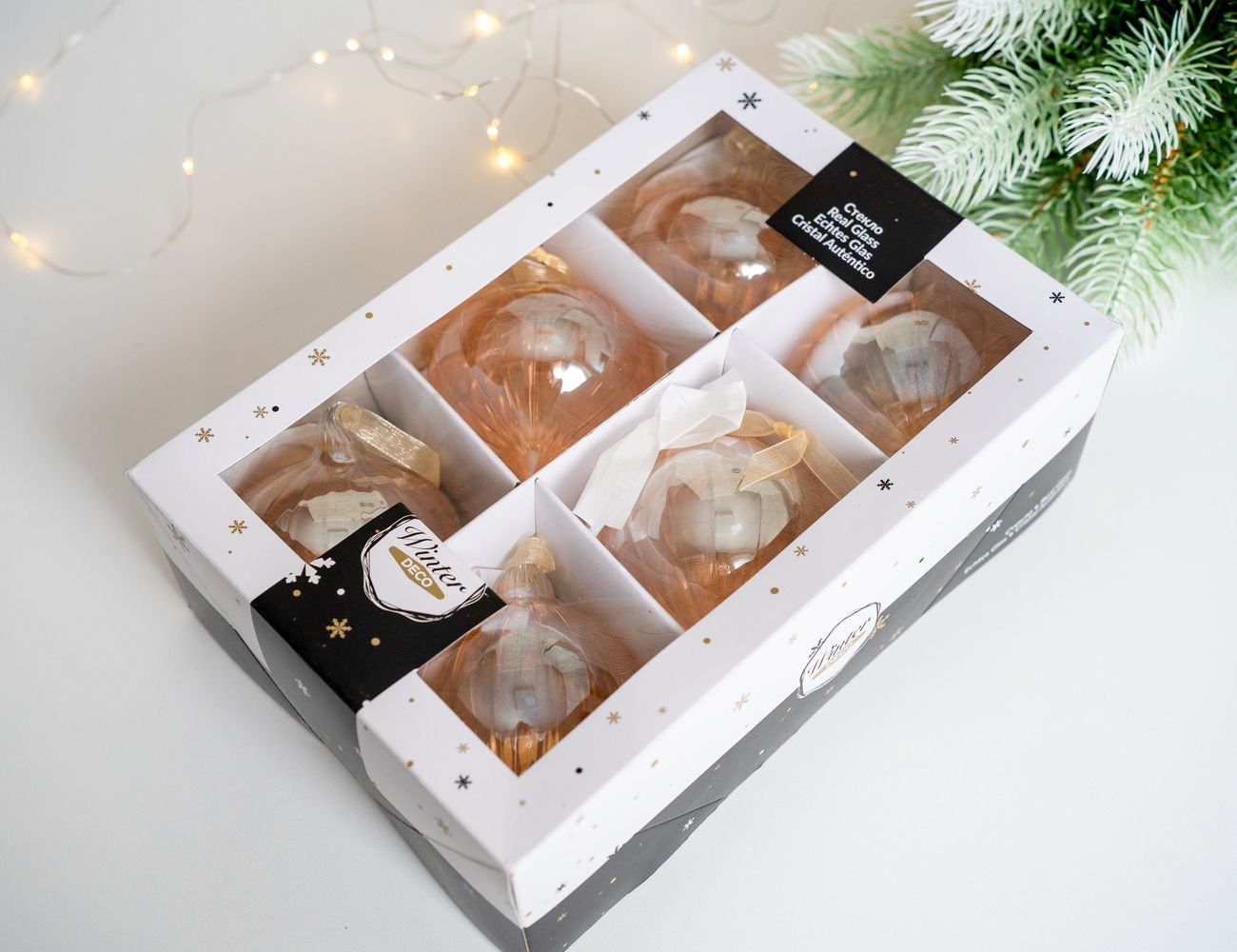 Набор ёлочных шаров и украшений СОЛНЕЧНЫЙ ВЕЧЕР, стекло, 8 см, 6 шт., Winter Deco