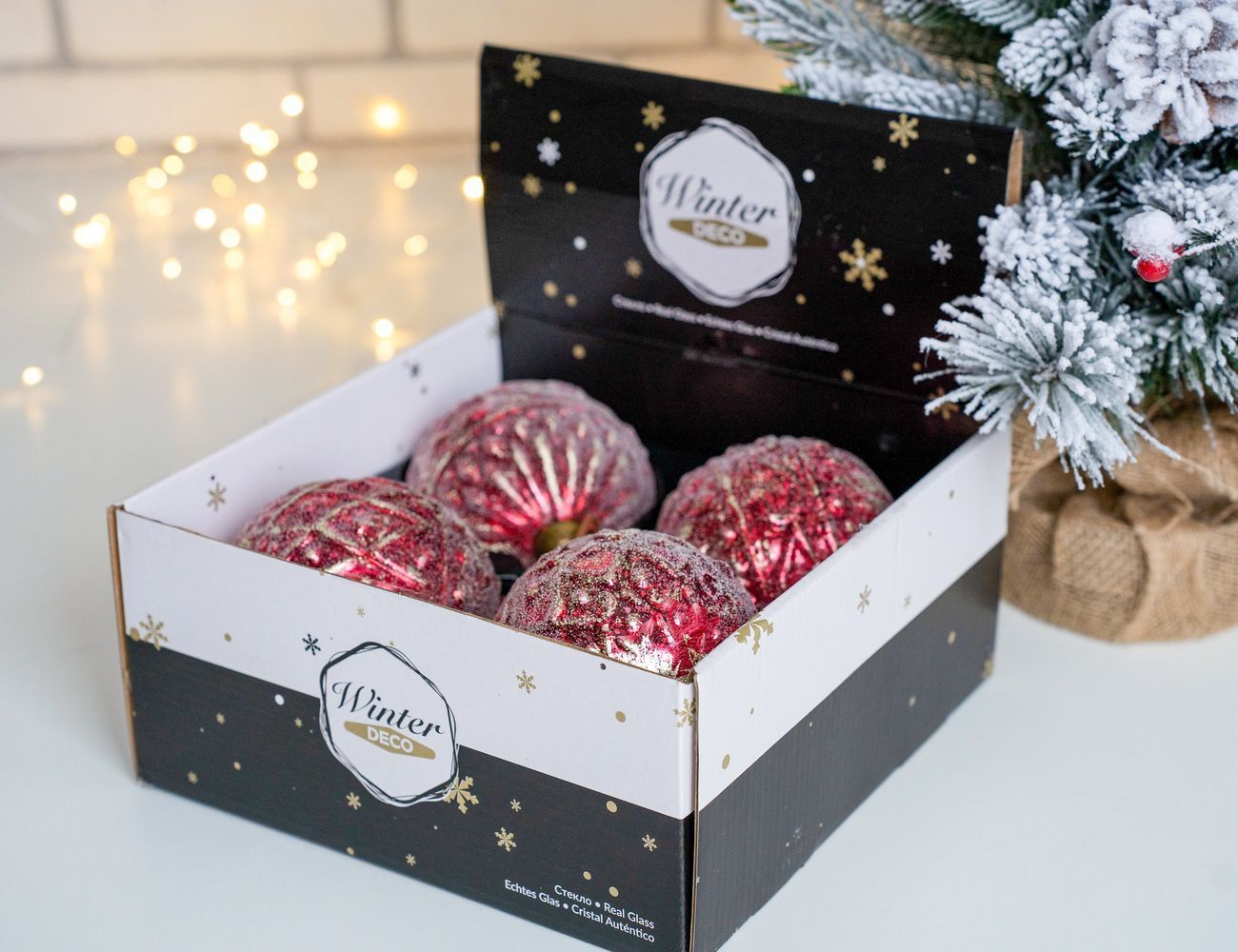 Самый праздничный и новогодний, самый рождественский и радостный - традиционный ансамбль красного и золотого цвета! А ещё сочетание фактур, тонкий рисунок в стиле барокко, изящные детали… Набор 'Джардини' - это не просто шары, это поистине королевский Праздник!